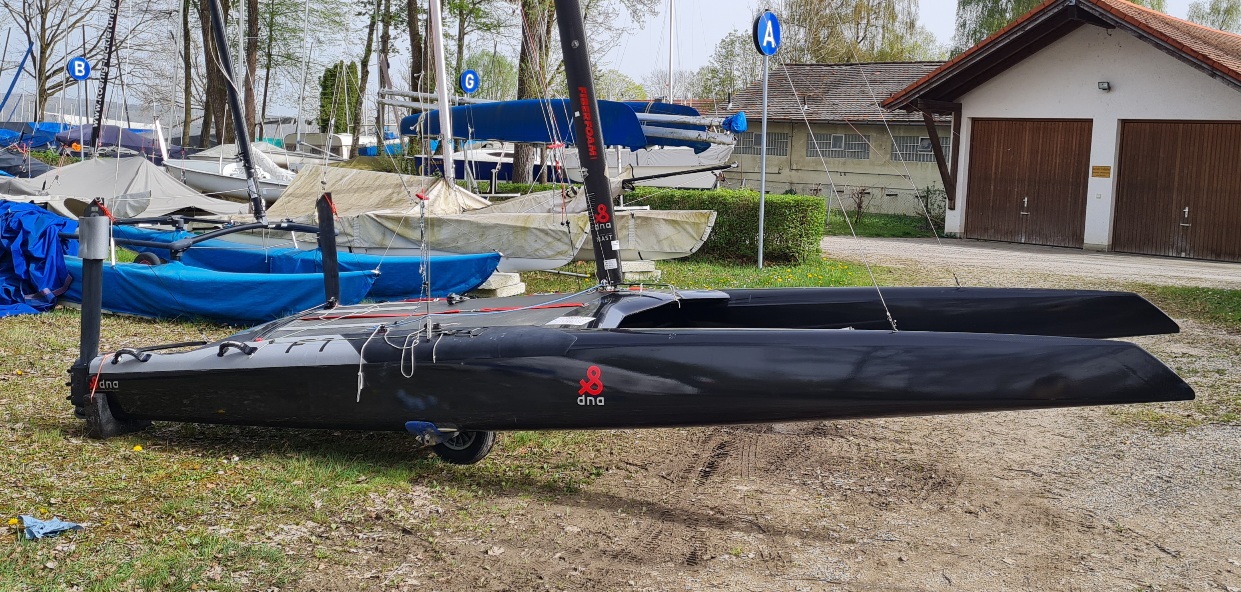 Komplett mit 2 Segel, 1x Bryt Pin top flach 2021 und 1x Mischa Segel 2016 voll.