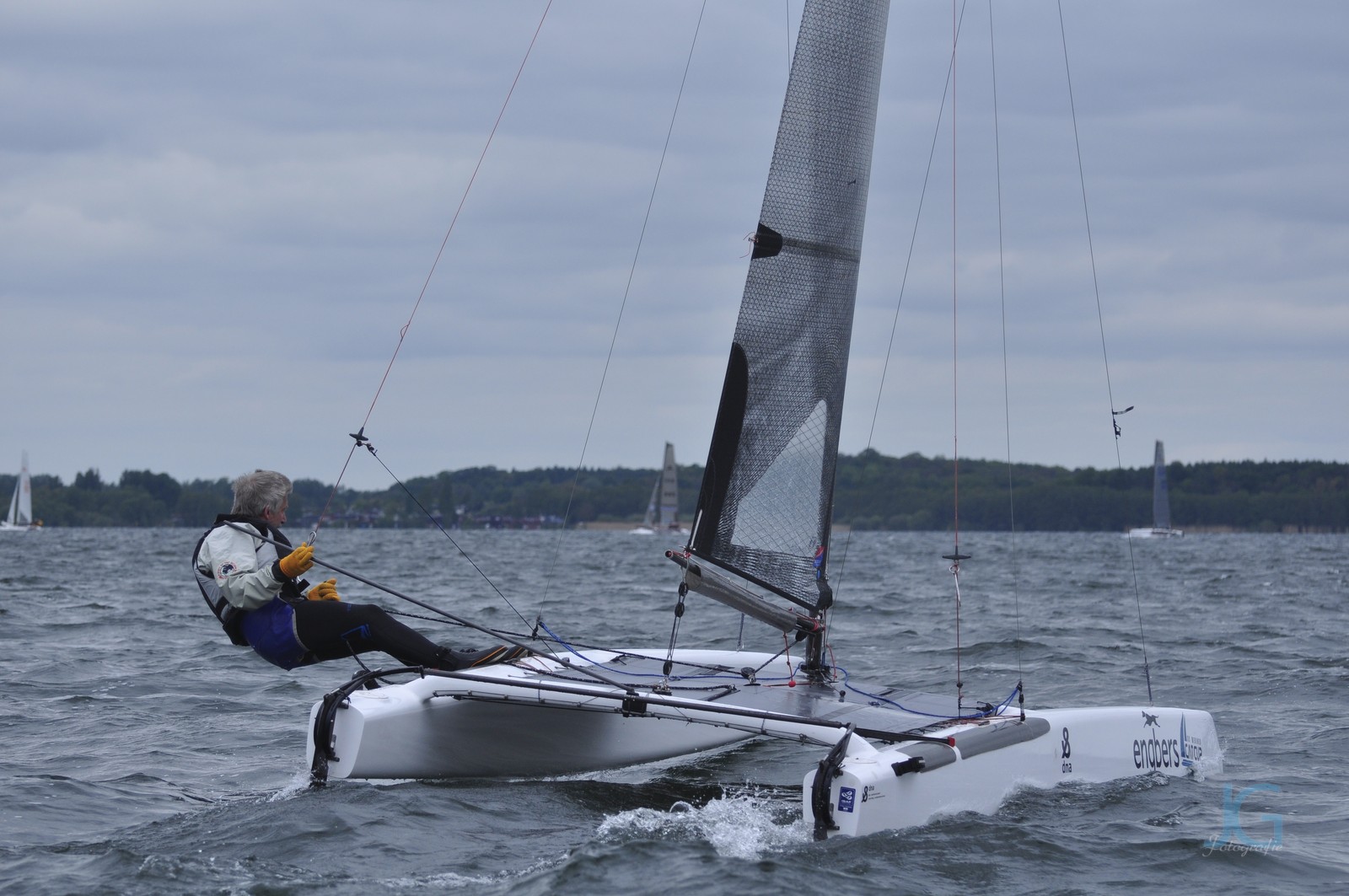noch im Originalzustand mit C-Schwertern, Winglets an den Ruderblättern und mit Mittelschot- Führung ( Kaskaden-Übersetzung) am Großbaum. Der Mast ist ein Fiberfoam medium von 2013, aber kaum benutzt und daher fast wie neu. Das Segel ist ein Membran von Landenberger. Das Boot wird mit Vollpersenning von Cat-Kit verkauft. Einen Slipwagen kann ich organisieren. Das Boot liegt am Steinhudermeer.