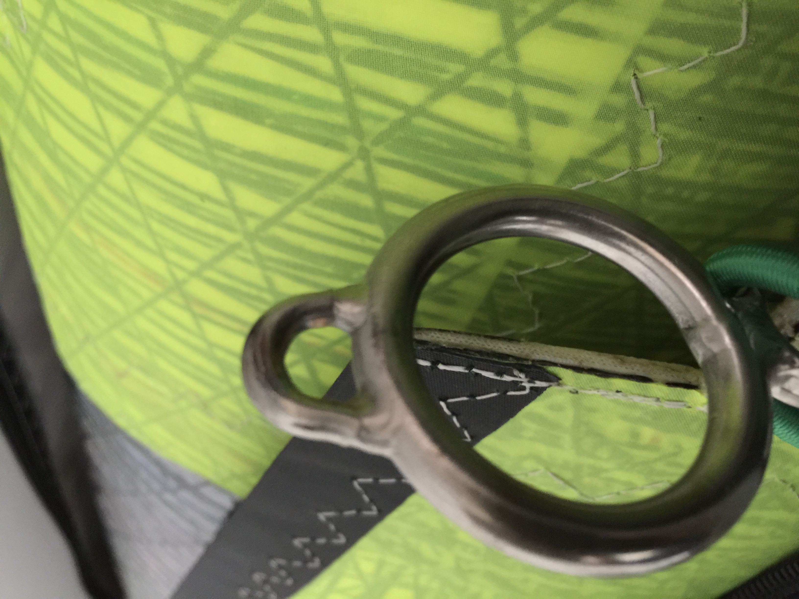 Das Segel wird nach oben geschoben und der Ring wird mit einem Gummiteil so vorgespannt,