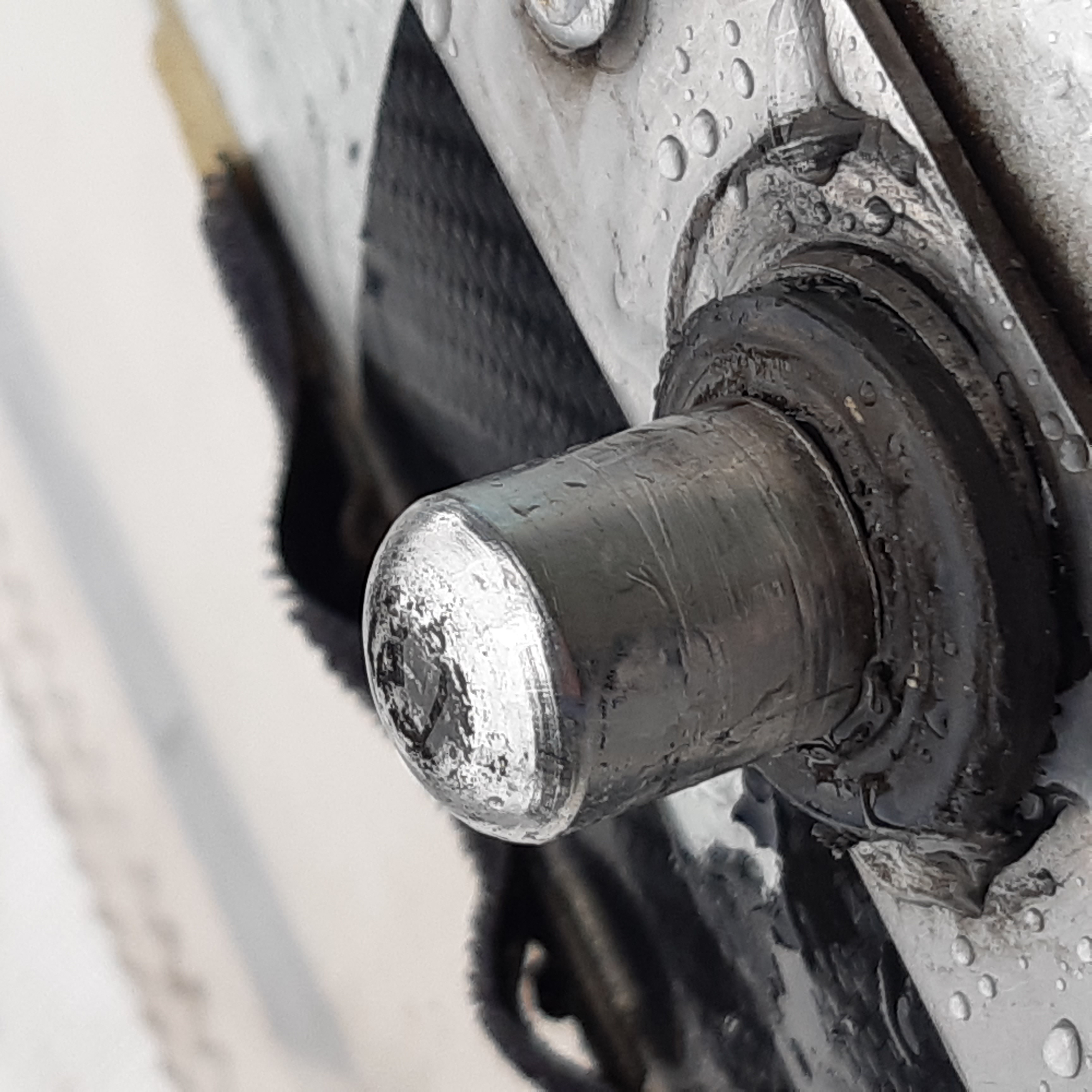 Danke an alle, die mir helfen wollten. Der Defekt ist jetzt repariert. Einfacher als ich dachte. Für diejenigen, die das gleiche Problem einmal haben sollten: Verstrebung Unterzug Beam entfernen. Mit einer Nuss (13er mit Verlängerung) durch die Öffnung nach oben, da sitzt eine SicherungsMutter am Beam, gleichzeitig den Bolzen also Mastfuss mit der Rohrzange gegen Verdrehen festhalten, auf- oder festschrauben, fertig. Fazit: die vermeintlich schwierigen Aufgaben lassen sich meistens am leichtesten lösen.