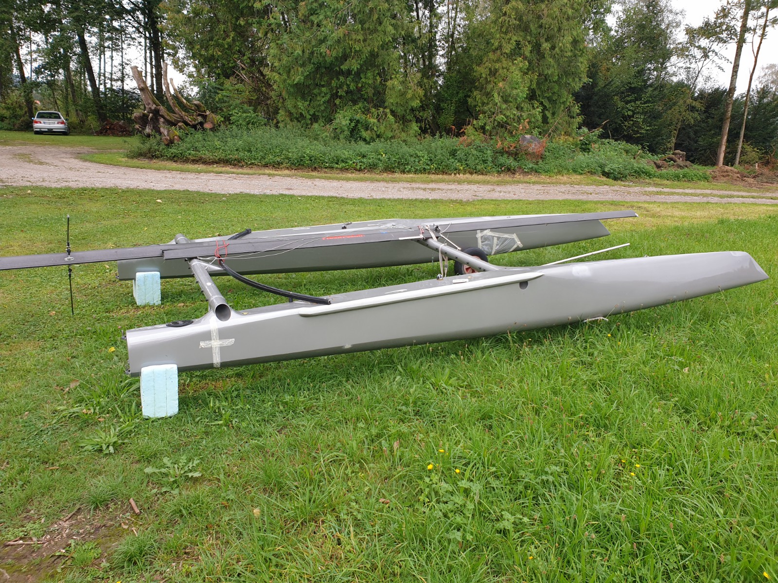welche Teile? Durch den Sturm ist der Mast defekt und der Body an einigen Stellen, dort müsste das Carbon repariert werden.