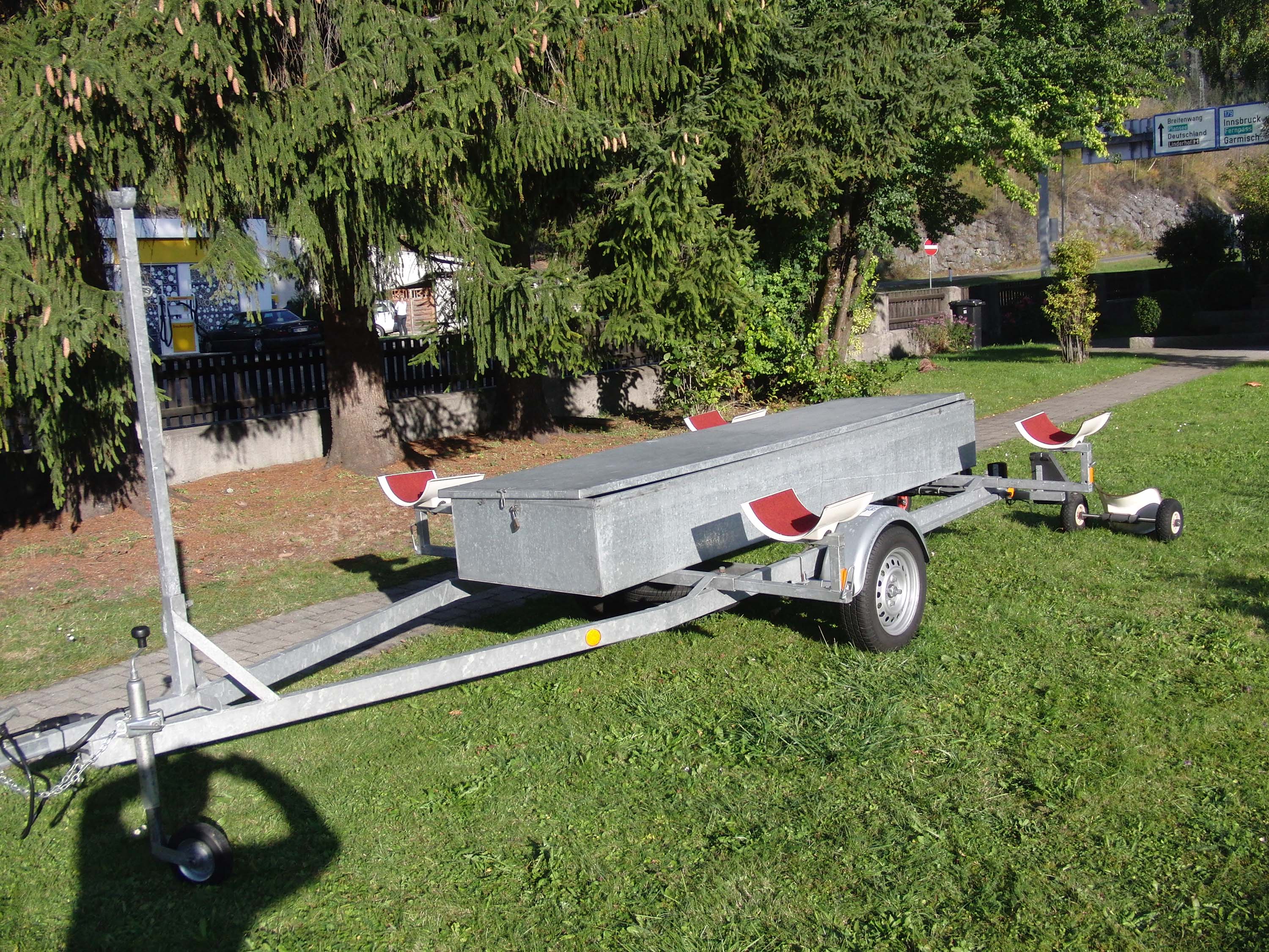 Eventuell dann das Boot umdrehen und mit dem Trampolin nach Unten auf den Hänger legen.