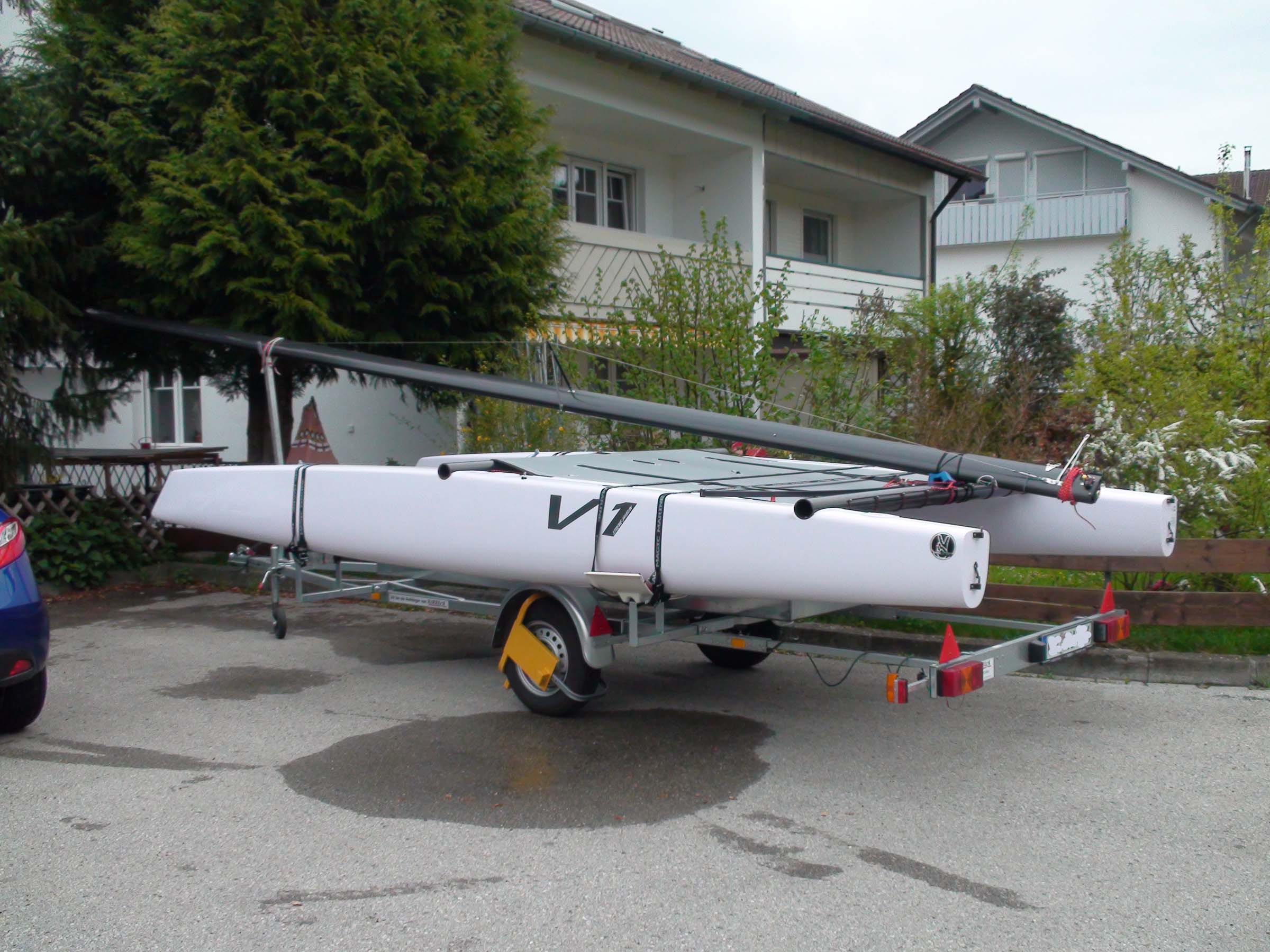 Vielen dank Roland. Flyer 2 hat gleiche messungen? Ist bei euch erlaubt das an der seiten des Trailers Catamaran steht über die Räder? Bei uns Ladung darf nicht über die Seiten des Rades schauen..