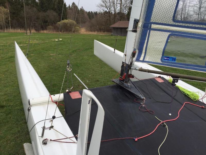 Wir verkaufen unseren 2001er Boyer A-Cat, wird noch gesegelt/segelfertig.