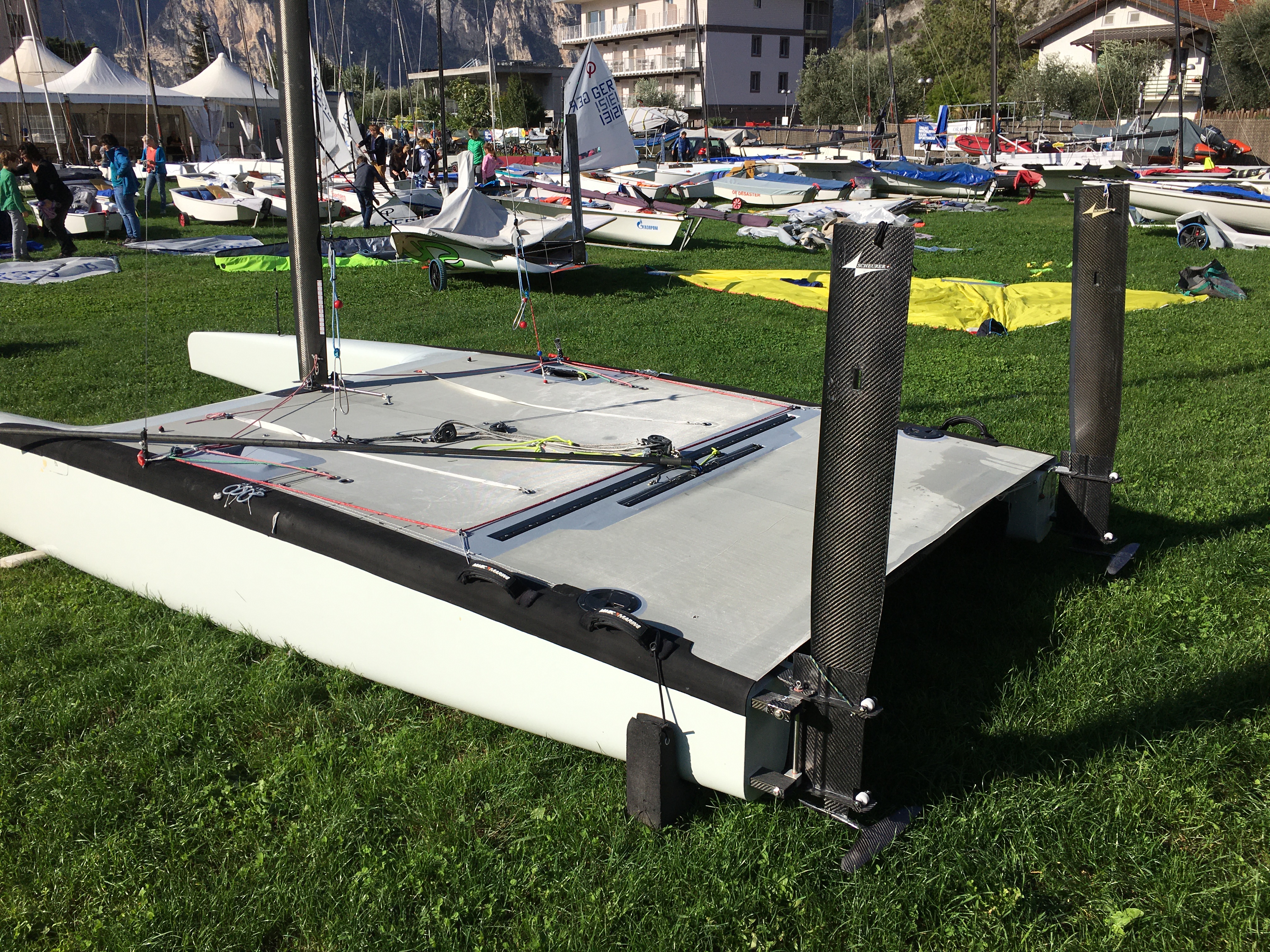 Fiberfoam medium tapered mast, decksweeper sail Misha, curved boom, rigging, mainsheet