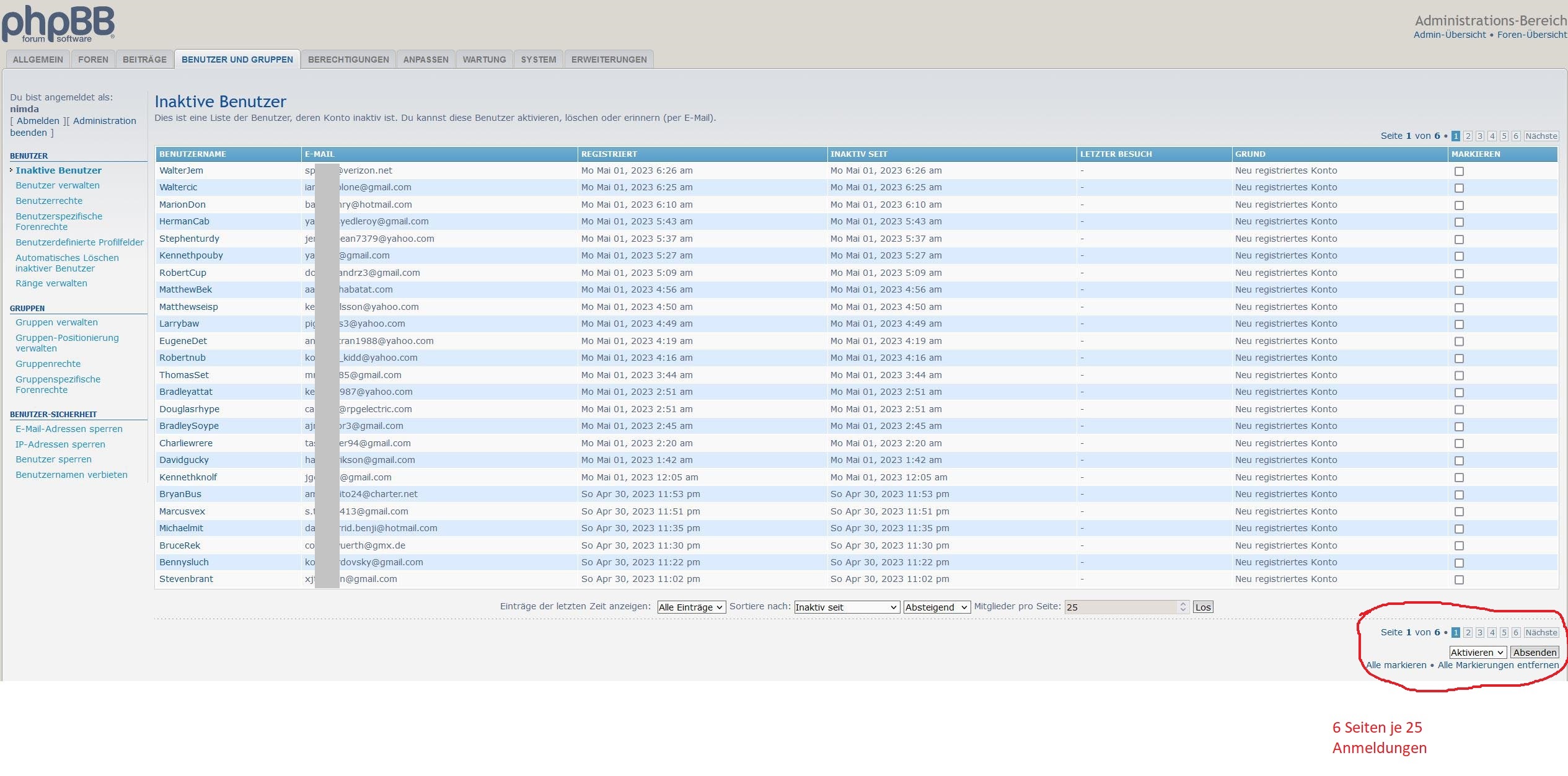 Bei dieser Menge ist es mir nicht mehr möglich, legale Registrierungen von Spammern zu unterscheiden und ich lösche alle aus der Liste.