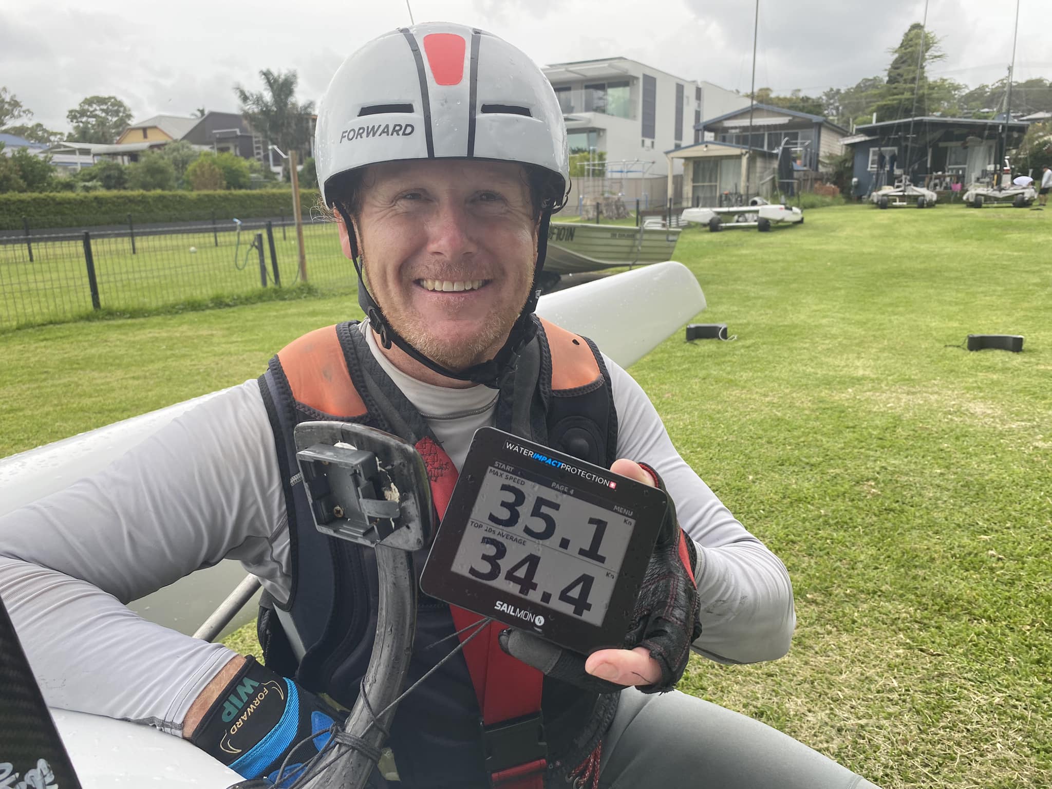 Umso bemerkenstwerter sind die akkurat gemessen 35,1 Knoten Topspeed, die der ehemailige Weltmeister Steve Brewin vor wenigen Tagen während des Trainings für die Australian Nationals erreicht hat. Sein 10-Sekunden-Mittel liegt bei 34,4 Knoten. Congratulations, das ist phänomenal!!
