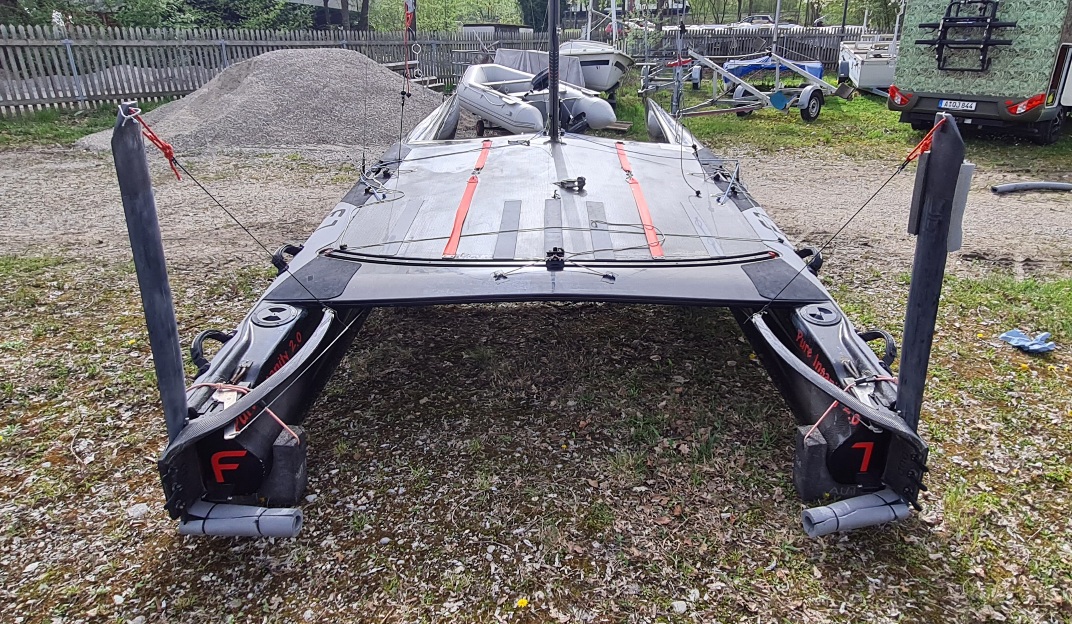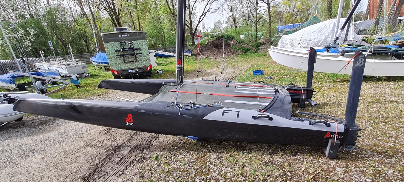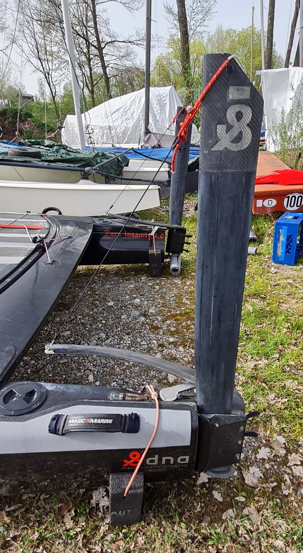 Komplett mit 2 Segel, 1x Bryt Pin top flach 2021 und 1x Mischa Segel 2016 voll.
