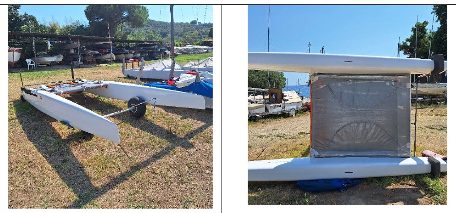 SCHEURER G7 CLASSIC PLATFORM (2015), IN REALLY GOOD CONDICTION, COMPLETE WITH C BOARDS ORIGINAL SCHEURER, T RUDDERS ORIGINAL SCHEURER PLUS WINGLET MADE BY MICHELE SAPONARA (FLUIDO DESIGN). BOARDS SLIDE SYSTEM REGULATION DURING NAVIGATION. TRAMPOLINE DOUBLE LAYER BY CHALLENGER SAILS 2022