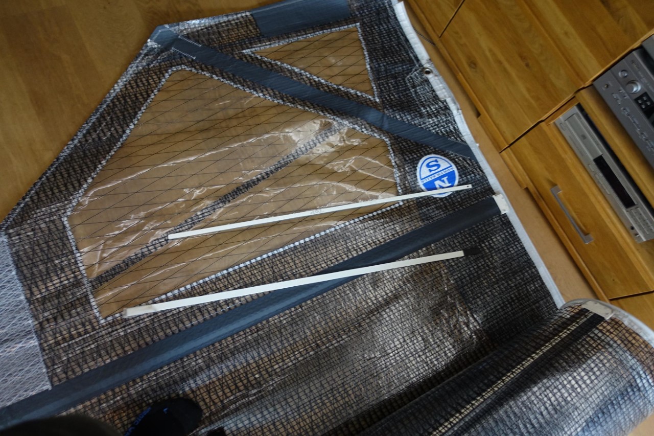 Eine kleine Reperatur vom Segelmacher am Schothorn, hat keine Auswirkungen.