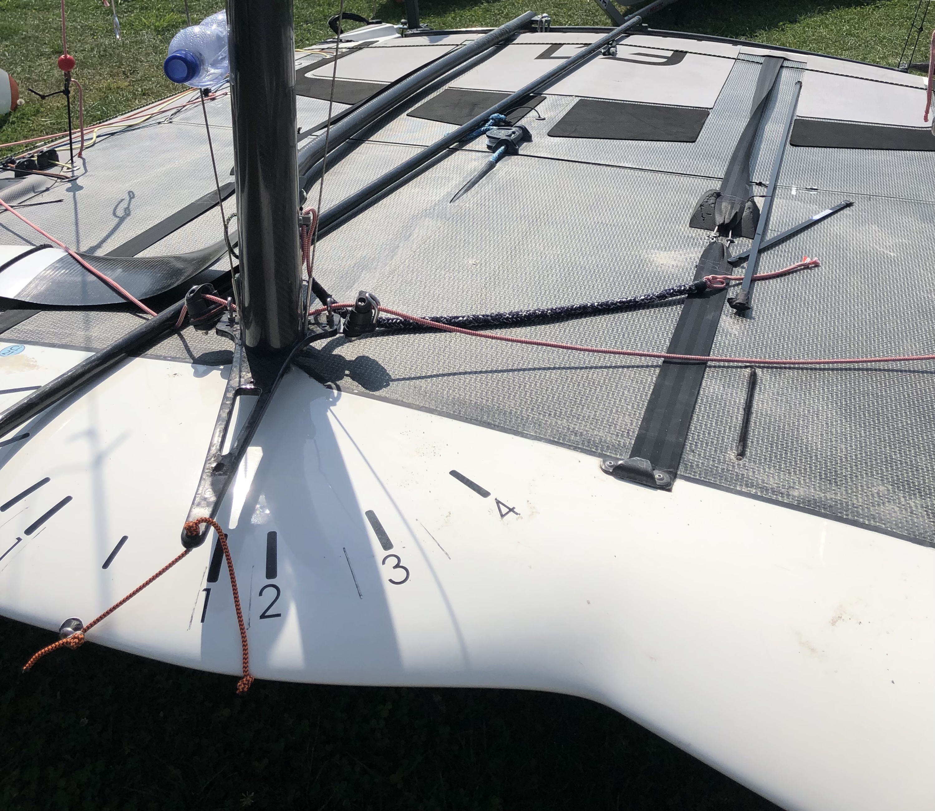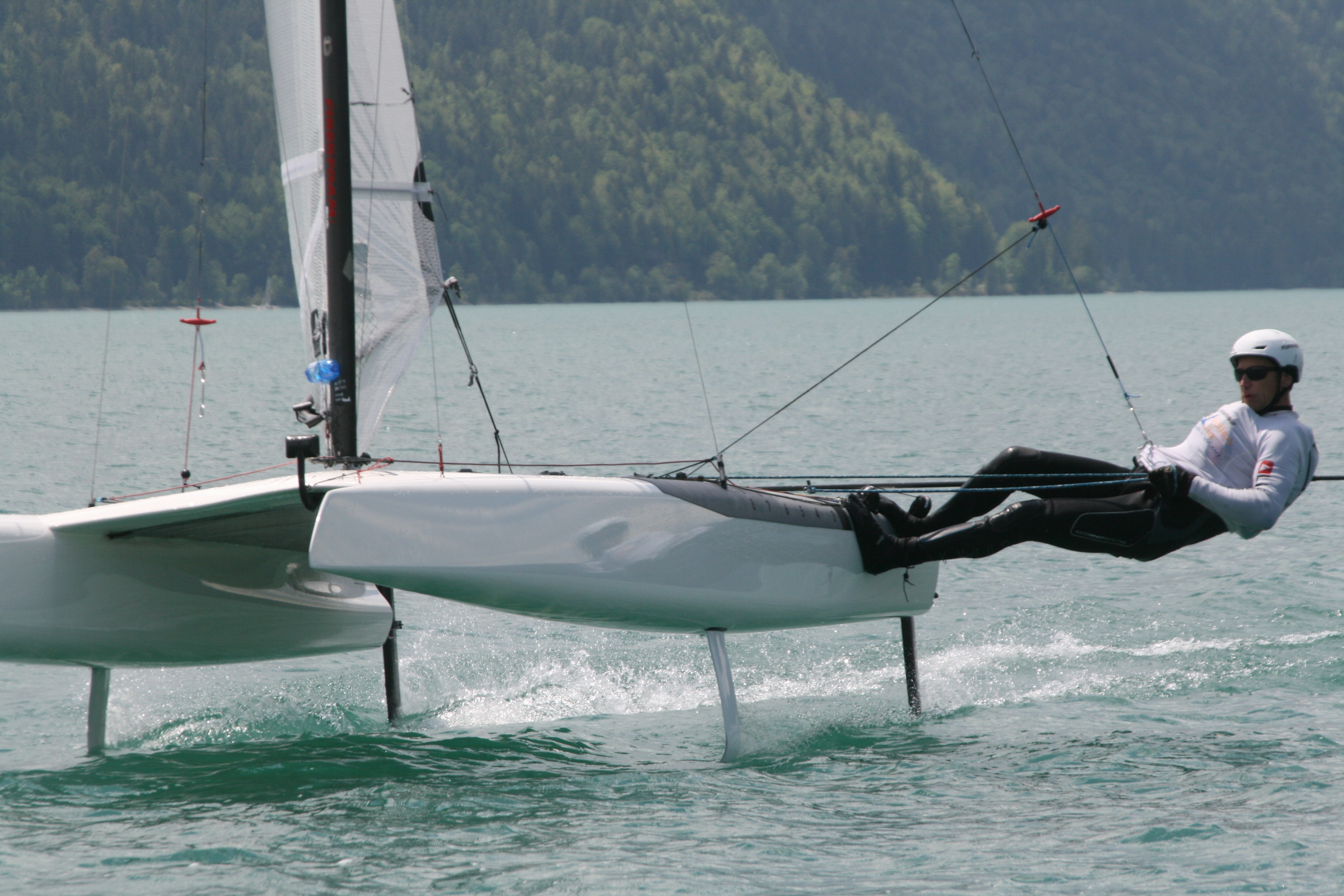 Two sets of main boards, spare rudder, tramp cover, delivered with clear coat only it was painted in winter 20/21, professionell reparation of a hole in the right hull, location lake Ammer (BY) or lake Garda