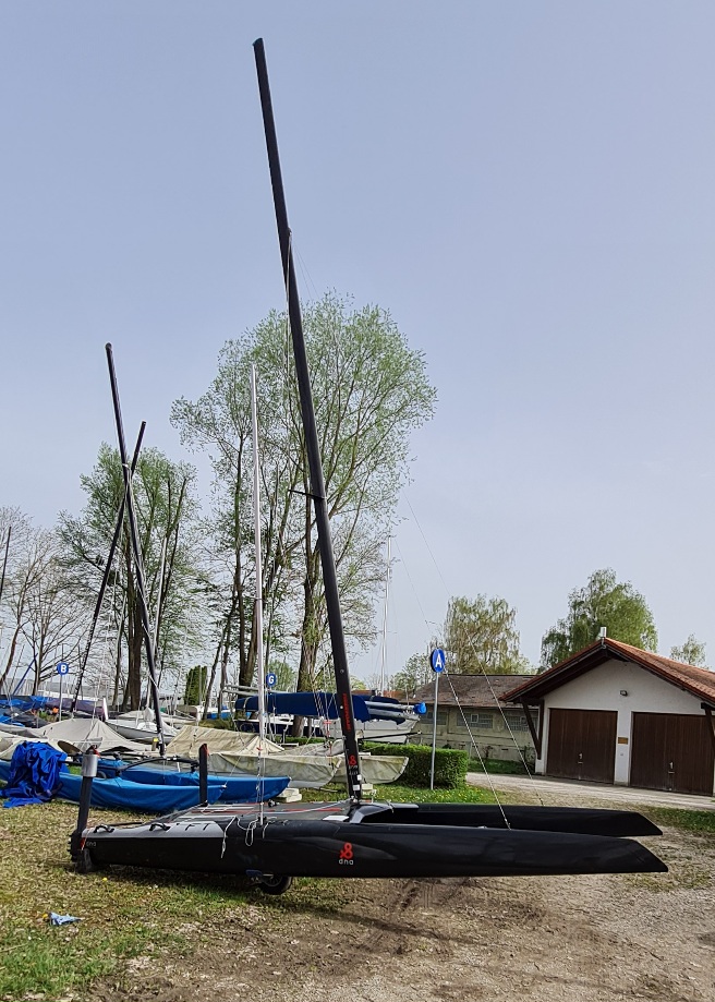 Komplett mit 2 Segel, 1x Bryt Pin top flach 2021 und 1x Mischa Segel 2016 voll.