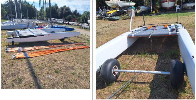 SCHEURER G7 CLASSIC PLATFORM (2015), IN REALLY GOOD CONDICTION, COMPLETE WITH C BOARDS ORIGINAL SCHEURER, T RUDDERS ORIGINAL SCHEURER PLUS WINGLET MADE BY MICHELE SAPONARA (FLUIDO DESIGN). BOARDS SLIDE SYSTEM REGULATION DURING NAVIGATION. TRAMPOLINE DOUBLE LAYER BY CHALLENGER SAILS 2022
