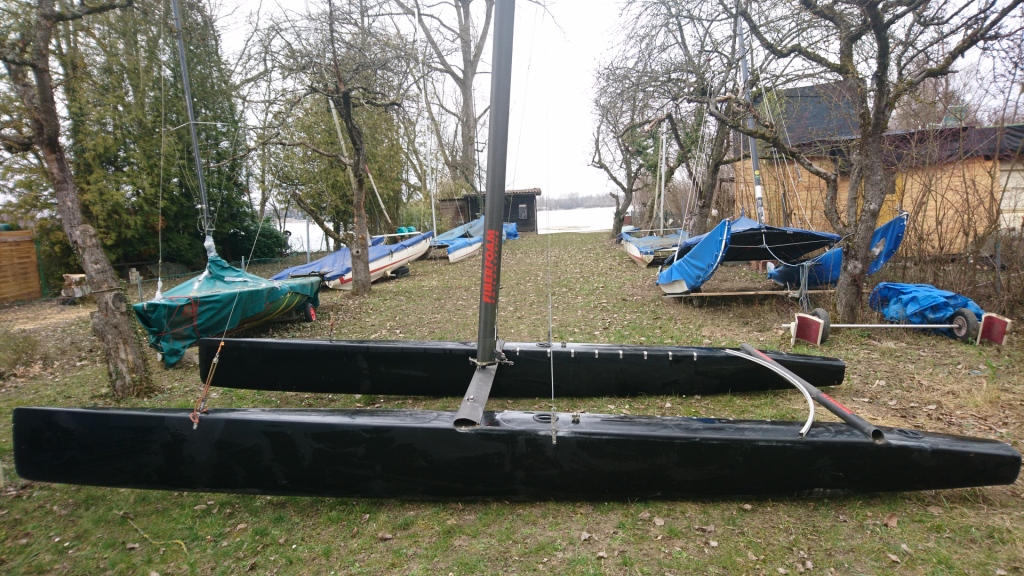 Danke, vielleicht kann man das Baujahr noch anhand der Ruder und dem geteilten Carbonmast genauer bestimmen. Ich habe gehört dass der Mast nur in einer bestimmten Zeit verbaut wurde. Wahrscheinlich vor 2000?
