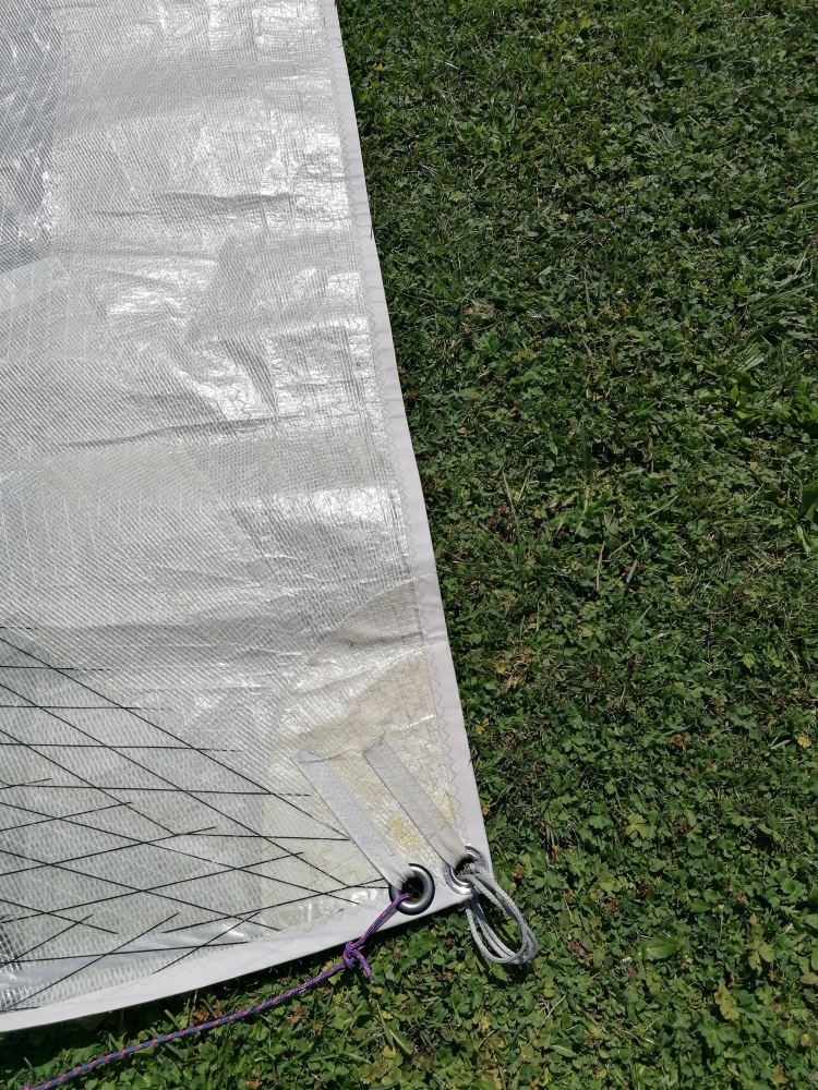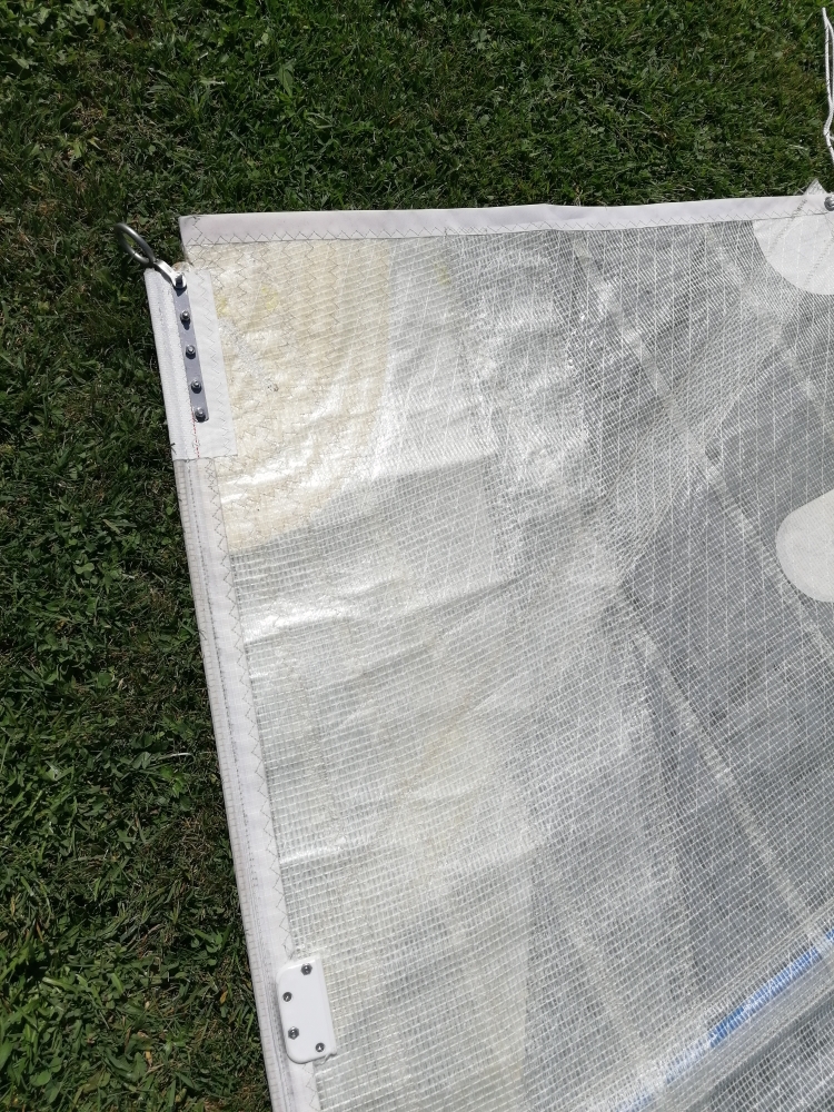Top-Zustand, unbeschädigtes starkes Vorliek! sehr festes Pentex-Tuch, besonders geeignet für mittel bis harte Masten. Allround-Einsatz. Das Segel steht faltenfrei. Festpreis mit Lattensatz: 600 €